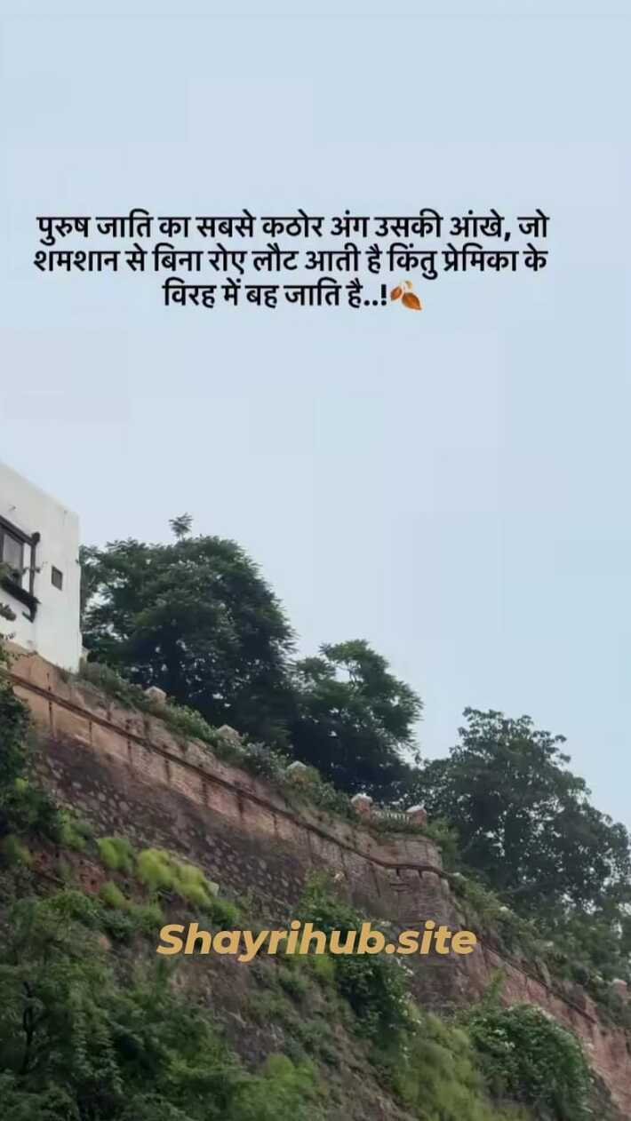 पुरुष जाति का सबसे कठोर अंग उसकी आंखें होती है जो शमशान से बिना रोए लौट आती है किंतु प्रेमिका के विरह में बह जाति है.....